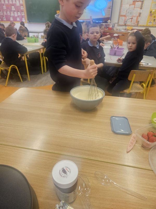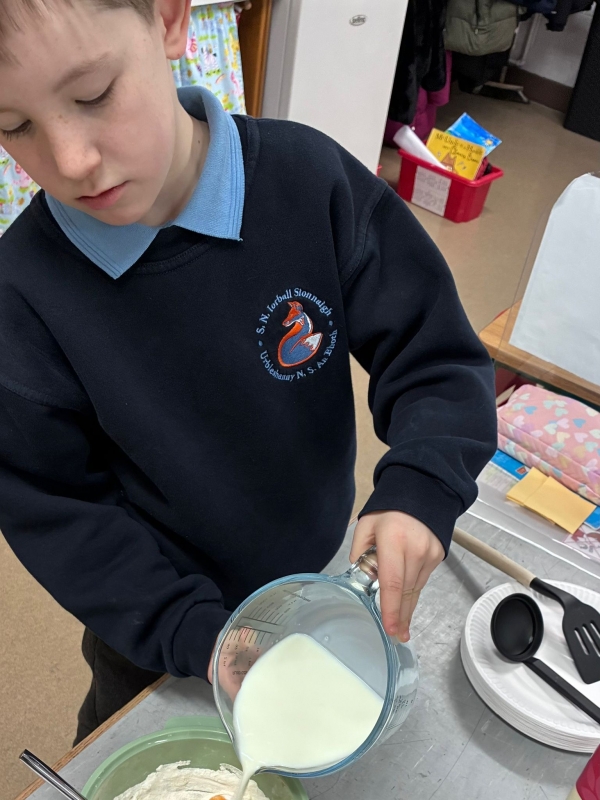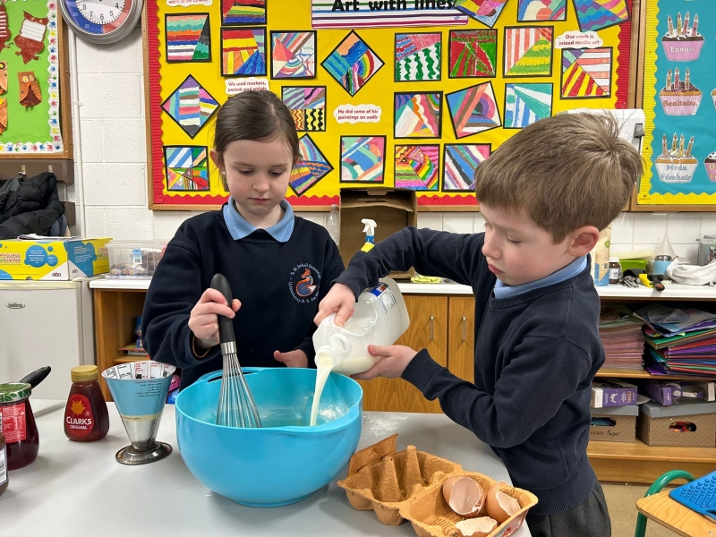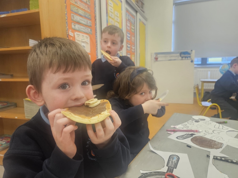 The smell of baking filled the corridors of Urbleshanny today as many eager pupils were sieveing, whisking, pouring and cooking pancakes for Shrove Tuesday.